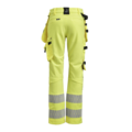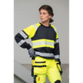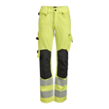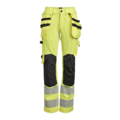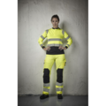 Varselbukse dame i 4-veis stretch med partier av slitesterkt vevd stoff ved benslutt, benlommer og holsterlommer. Avtagbare holsterlommer med zip-in-funksjon og med ekstra rom og forsterket innside kan stoppes ned i frontlommene. Stretchy midjebånd. Stolpe-lommer bak. Hammerhank. Tommestokk-lomme med knivholder. Benlomme med dekket glidelås, ID-kortlomme og telefonlomme. Forbøyde knær med knebeskyttelseslommer i slitesterk polyamid med 2 høydenivåer for knebeskyttelse inni. Påvarmet refleksoverføring, Jobman design. Mesh i knehasene for ventilasjon. Buksebenet kan forlenges med 5 cm gjennom et utbrett i bensluttet.