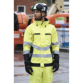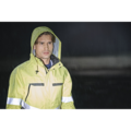 Vind- og vanntett skalljakke med tapede sømmer. Pustefunksjon, som er perfekt i henhold til lag-på-lag-prinsippet. Brystlommer med borrelås og brystlommer med vanntette glidelåser. Framlommer med glidelås. Doble innerlommer med glidelås og åpen innerlomme. Justerbar i erme og nederkant. Avtagbar hette med snor. Meshfôr skaper luftbuffer og ventilasjon. Sertifisert i henhold til EN343 mot regn. Sertifisert i varselklasse 3 i henhold til EN20471.