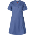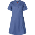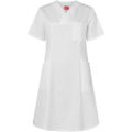 Klänning 98cm från Segers. Klassisk vårdklänning som är utställd längst ner med sprund i sidorna och V-ringad krage. Den har rikligt med fickor och dold knäppning framtill. Tyget är slitstarkt och finns i många olika färger.