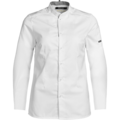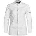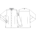 Moderne og optimal passform. Stå opp krage. Kontrastfarge inne i kragen. Syet på knapper med kontrasttråd. Brystdart. Lange ermer. Kragebelte for brystforkle. Delet pennlomme på venstre erme. Tilbake dart. Side slisser.