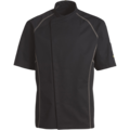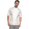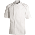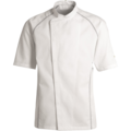 Smart og sporty design. Lett og pustende kvalitet. Kinakrage. Henger i nakken for brystforkle. Flatlock-sømmer. Skjulte trykknapper. Pustende stretch- og jersey-materiale i ryggen og under armene, som gir god komfort og bevegelsesfrihet. 1/2 ermer. Pennlomme på venstre arm.