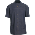 Moderne passform. Kina krage. Kontrasterende indre krage. Sydde knapper med kontrasttråd. Korte ermer. Mansjetter. Halsstropp for brystlappforkle. To pennelommer på venstre erme. Spalte i sidene. Unisex.