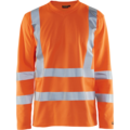 Langermet varsel t-skjorte med v-hals i et nytt og mykt materiale. En suveren genser som er sval og behagelig å jobbe i. Genseren beskytter mot UV-stråling og har en solbeskyttelsesfaktor på 40+. Refleksen er en transferrefleks. Sertifisert i henhold til EN 471/EN ISO 20471, klasse 3, vernetøy med høy synlighet samt EN 13758-2 UPF 40+ solbeskyttende egenskaper.
