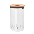 Vaskekurv 60L fra Brabantia. Det øverste lokket har en smart Quick-Drop-åpning som gjør at man ikke trenger å ta det av for å legge i vasken. På vaskedagen tar man av lokket for enkelt å ta ut den passende vaskeposen inni.