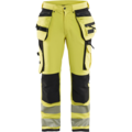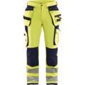 En smidig og komfortabel varselbukse, ekstremt myk og bevegelig med avsmalnende ben. Buksen er konstruert for å takle krevende arbeidsoppgaver uten å kompromisse med komfort og passform. Materialet er myk 4-veis stretch som er både sterk og elastisk i alle retninger. Buksen har avanserte detaljer og praktiske lommer med CORDURA®-forsterkning, benlomme med glidelås og bunn, tommestokklomme, frontlommer, baklommer med klaff og funksjonelle verktøyholdere som for eksempel løkker for hammerholdere. Knebeskyttelseslommen er forsterket med CORDURA®-stretch utvendig og stretch innvendig for økt bevegelighet. Myk mesh-stretch i knehasene for god ventilasjon. Benavslutning med CORDURA®-forsterkning gir effektivt beskyttelse mot slitasje. Sertifisert i henhold til EN ISO 20471 klasse 2 beskyttelsesplagg med høy synlighet.