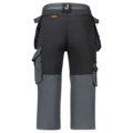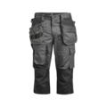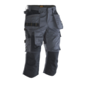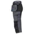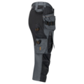 Lettstelt polyester/bomull som holder farge og form. Stretchpaneler på bakstykket for økt bevegelighet. Romslige frontlommer. Holsterlommer med forsterkning og ekstra rom samt en ekstra lomme med glidelås. Stolpelommer bak. Benlomme med ekstra rom og lokk med borrelås. Tommestokk-lomme med knivholder. Lomme for mattleggerkniver på låret. Forsterkning på knebeskyttelseslommer med to høydenivåer for knebeskyttelse.