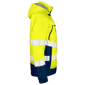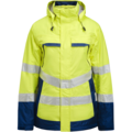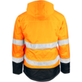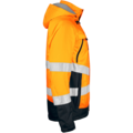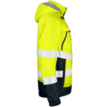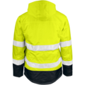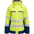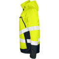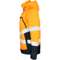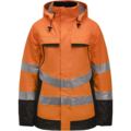 Vattert jakke som er vind- og vanntett med tapede sømmer. Generøst med doble brystlommer; 2 med klaff og borrelås og 2 med vanntette glidelåser. Forlommer med klaff og glidelås. 3 innvendige lommer, 2 med mesh og glidelås, 1 med borrelås. Justerbar ermeavslutning med borrelås. Hetten har snor og kan tas av med trykknapper. Sertifisert i henhold til EN 343 for regntøy. Sertifisert i varselklasse 3 i henhold til EN ISO 20471.