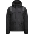 Varmforet, vattert, vind- og vanntett jakke med tapede sømmer. Doble brystlommer; to med klaff og borrelås og to med vanntett glidelås. Frontlommer med klaff og glidelås. Tre innerlommer, to med glidelås og én med borrelås. Regulerbar på ermene og i nederkanten. Refleksdetaljer på lommer og nederst på ryggen. Vattert hette med snøring, avtagbar med trykknapper. Vannsøyle: 23 000 mm. Pusteevne: 3300 g/m² 24 h.
