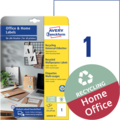 Universaletiketter fra Avery laget av resirkulert papir som kan brukes i laserskrivere, blekkskrivere og kopimaskiner. De miljøvennlige etikettene passer til ulike formål, f.eks. adresseetiketter eller varig merking av gjenstander. Pålitelig permanent hefting på alle glatte overflater. For innendørs bruk.