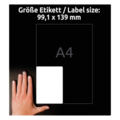 Etiketter 99,1x139 mm hvite slitesterke fra Avery som passer perfekt for permanent, holdbar merking både innendørs og utendørs. Gir effektiv og sikker merking av IT-utstyr, verdifulle verktøy osv. Etiketten er laget av rivesterk polyester som er betydelig mer holdbar enn vanlige papiretiketter. De er motstandsdyktige mot olje, smuss, vann, fukt, UV-stråling og temperaturer fra -20 °C til +80 °C. De kan skrives ut av farge laserskrivere, svart-hvitt laserskrivere og kopimaskin.