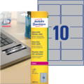 Ekstra slitesterke sølvetiketter fra Avery for innendørs- og utendørsbruk er både holdbare og vakre, noe som gjør at etikettene passer godt til permanent merking av IT-utstyr, mobile enheter og maskiner. De kan også brukes til vakker merking av brosjyrer m.m. Etikettene er laget av rivesterk polyester som tåler betydelig mer enn vanlige papir etiketter. De tåler olje, smuss, vann, fukt, UV-stråling og temperaturer fra -40 °C til +150 °C.