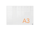 Akryl whiteboard ukeplanlegger A3. En moderne og rammefri ukeplanlegger som er perfekt for notater, ideer og viktige datoer på hjemmekontoret. Den gjennomsiktige akrylplanleggeren kan monteres på veggen med selvklebende puter og magneter for metallflater, eller brukes flatt på skrivebordet. Overflaten er lett å tørke av, noe som gjør at du kan skrive, viske ut og begynne på nytt.