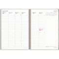 Business Kalender A5 2026 fra Burde er en myk spiralbundet kalender i brun kunstskinn med en praktisk flik som kan brukes som bokmerke. Kalenderen viser en uke per oppslag, slik at du enkelt får oversikt over hele uken.