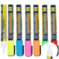 Kraftig fluorescerende. Passer på for eksempel glass, speil, whiteboard og tavler. Effektfullt ved UV-belysning. Tørkes bort med fuktig klut. Vannbasert pigmentblekk, lysekte og luktfritt.