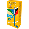 BIC Fyrfärgspenn original med utskiftbare patroner. Merket med NF Environment Ecolabel. Blå og hvit pennkropp, 1,0 mm stift som gir 0,32 mm brede linjer. Skrivelengde 8000 m. Farger: Blå, Svart, Rød og Grønn. EAN-kode på pennen.