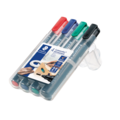 STAEDTLER Lumocolor® Permanent merkepenn med rund spiss. En praktisk plastboks med 4 penner. Kan brukes på nesten alle overflater og smitter ikke. Tørker på et blunk, noe som er ideelt for venstrehendte brukere.