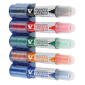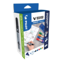 Whiteboard-kit fra Pilot. Settet inneholder 5 stk V-board master whiteboardpenner med rund spiss, en magnetisk pennholder og et magnetisk tavlesudd. Stilig design i klassiske farger – perfekt for magnetiske whiteboards på kontor eller i skole.