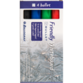 Sett med Ballograf Friendly whiteboardpenner med hurtigtørkende farge som er lett å fjerne og rund spiss. Pennekroppen er laget av resirkulert papir, noe som reduserer miljøpåvirkningen med 50%. Pennene bør oppbevares liggende for best bruk.