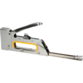 Meget holdbar stiftemaskin for fintrådklammer, 4-8 mm. Passer for stifte tynnere materialer, som for eksempel stoff og papir der det holder med kortere klammer. Robust stålkonstruksjon. Rekylfri for behagelig bruk. Forkrommet med gul ABS-plast i grepet