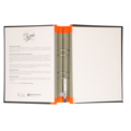 Klassisk perm med tre rygg i treverk og enestående funksjonalitet. Robuste permkanter som holder seg rette, forsterket i bunnen med vevkant.