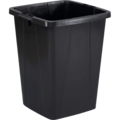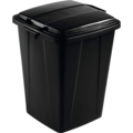 Svart søppelbøtte Durabin 90L med bærehåndtak for enkel transport. En firkantet søppelbøtte laget av resirkulert plast, sertifisert med Blauer Engel. Allsidig design som passer til ulike typer avfall, samt til oppbevaring og transport av råmaterialer.