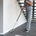 Grå fuktmopp i mikrofiber for rengjøring av harde, flate gulv. Mikrofibermoppen samler effektivt smuss, støv og bakterier, fjerner flekker og overfladisk smuss. Utmerket for kafeer, kantiner, skoler og hoteller. Miljømerket med Svanen.