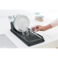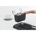 Diskstativ SinkSide Kompakt fra Brabantia rommer tallerkener, glass, kopper og bestikk. En perfekt løsning for begrensede plasser. Dryppbrettet forhindrer at benkeplaten blir våt og kan også brukes separat.