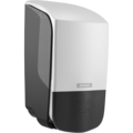 Hvit såpedispenser 500 ml fra Katrin. Praktisk dispenser med kontrastfarge, transparente sidepaneler og heldekkende trykkflate. Kan brukes med Katrins skumsåpe, flytende såpe, dusjsåpe og desinfeksjon 500 ml.