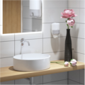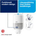 - Hvit Tork-dispenser til flytende såpe, Tork S2 system.