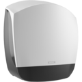 Katrin Inclusive Gigant L Dispenser er en hvit toalettpapirdispenser for Gigantruller - store toalettpapirruller for høyfrekvent bruk. Det er enkelt å sjekke papirnivået takket være de transparente sidestykkene på dispenseren.