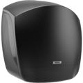 Katrin Inclusive Gigant S Dispenser er en svart toalettrulledispenser for Gigantruller - store toalettruller for høyfrekvent bruk. Enkel å kontrollere papirmengden takket være gjennomsiktige sidepaneler.