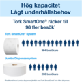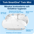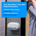 Tork SmartOne Mini Twin Toalettpapir i Elevation-design er et effektivt og svært robust dispensersystem som passer perfekt for krevende toalettområder med høy besøkstrafikk. Med to ruller som mater ut ett ark om gangen, reduseres forbruket med opptil 40 % sammenlignet med vanlige dispensere for jumboruller, noe som betyr mindre vedlikeholdsarbeid.