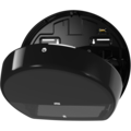 Svart dispenser fra Tork er designet for bruk med Jumbo-toalettpapir og er ideell for toalettområder med høy besøkstrafikk. Med sitt moderne og funksjonelle design bidrar den til et rent og profesjonelt miljø.