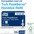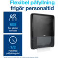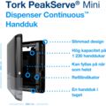 Svart Tork PeakServe Mini dispenser H5 er en slank og praktisk dispenser for papirhåndklær, tilpasset områder der personalet trenger rask tilgang til håndvask. Dispenseren rommer 1230 håndklær og er enkel å etterfylle.