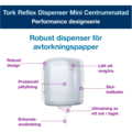 Tork® Reflex® Dispenser Senterrull er den ultimate løsningen for tørking av hender og overflater på kjøkken, som f.eks. benker og hyller. Utviklet for effektivisering av arbeidsoppgaver i de fleste arbeidsområder og miljøer.
