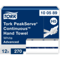Håndkle Continuous L-1 Z-Fold H5 fra PeakServe-serien fra Tork. Myke og effektive håndklær som oppfyller kravene til godt besøkte toaletter. Håndklærne mates ett om gangen, noe som reduserer avfall og risiko for papirmangel.