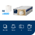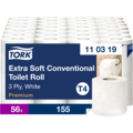 Toalettpapir Tork Ekstra Myk 3-lags 19M er hvite 3-lags toalettpapirruller av høy kvalitet. Med et luksuriøst utseende og en behagelig følelse, gir det overlegen ytelse for eksklusive toalettrom. Laget av nyfiber og resirkulert fiber, og merket med EU-blo