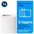 Toalettpapir Tork Myk 3L 35M T4 er hvite 3-lags toalettruller av høy kvalitet. Toalettpapiret er produsert av nyfiber og resirkulerte fibre og er merket med EU-blomsten. Dette papiret passer godt inn i alle typer toalettrom.