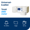 Tork Universal Mini Jumbo T2 Toalettpapir er hvitt, 1-lags toalettpapir av god kvalitet. Dette toalettpapiret passer perfekt i miljøer med middels til høy besøkstrafikk, som for eksempel innen foodservice.