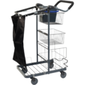 Rengjøringsvogn Tripp 3 med tilbehørspakke. I tilbehørspakken får du en stor kurv, 6 liters bøtte med lokk, kroker, vaskepose, stativholder og terskelklatrer. Rengjøringsvognen er enkel å montere og har 40% mer kapasitet enn tidligere modeller.