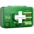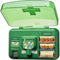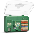 Førstehjelp Dispenser Wound Care fra Cederroth. Perfekt som et supplement til førstehjelpsstasjonen og plasseres der du har høy risiko for kuttskader. Inneholder sårvask, plaster i ulike størrelser og myke skumbandager.