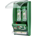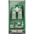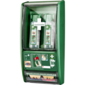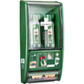 Øyedusjstasjonen er designet for rask hjelp når det trengs. Den inneholder 2 flasker som åpnes automatisk når de vrides ut av holderne. Flaskene er utformet slik at øyet skylles med et rikelig vannstrøm i omtrent 1,5 minutter.