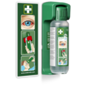Holder til Øyeskyll 500 ml fra Cederroth. Solid og praktisk veggholder som oppbevarer flasken på en fast plass, slik at alle vet hvor den befinner seg. Flasken åpnes automatisk når den vrides ut av holderen, og øyeskyllingen kan starte umiddelbart.