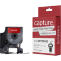 Mærkebånd Capture 12 mm er et standardbånd som er slitesterkt og av høy kvalitet. Det er transparent med svart tekst og passer til mange ulike typer arbeidsplasser, som kontoret, verkstedet eller butikken, samt i hjemmet.