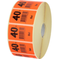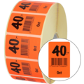 - Røde klistremerker på rull med svarte bokstaver og teksten "Ost 40:-"