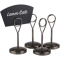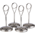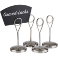 Skiltstativ 4-pak i bordmodell av rustfritt stål fra APS, komplett med 20 svarte plastskilt. Ideell for buffeer og serveringsbord, for å tydelig informere gjester om innhold og tilbud. En praktisk og stilren løsning for å forbedre gjesteopplevelsen.