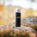 - Svart termos fra Thermos King med skrukork. Her har man kombinert svært høy kvalitet med vintage design i utseendet. Termosen er laget av rustfritt 18/8 stål og fungerer bra ved alle anledninger, enten det er ute i skogen eller i bilen på vei til neste møte.