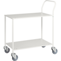 Pulverlackerad bordsvagn av hög kvalitet med en praktisk arbetsyta. Bordsvagn liten bromsad från Kongamek har ett helsvetsat utförande i en fin vit färgton och kommer med två tåliga ytor av laminat. Passar utmärkt för alla typer av lokalmiljöer.