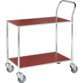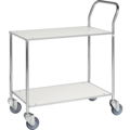 Helsvetsad gedigen bordsvagn i mindre format med två hyllplan och greppvänligt handtag. Bordsvagn liten obromsad från Kongamek består av en förzinkad stålkonstruktion med lastytor av tåligt laminat för bästa kvalitet och hållbarhet.