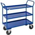 Denna hyllvagn med tre hyllplan med stöttande kant lämpar sig utmärkt för transport och förvaring av tyngre gods. Hyllvagn 3 plan, helsvetsad från Kongamek har dessutom två bekväma handtag och är mycket lättrullad.